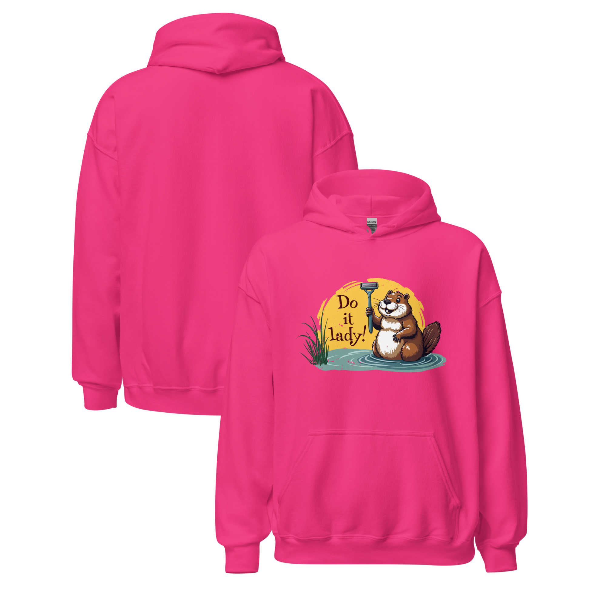 “Do It lady!” Funny Beaver Women’s Hoodie – Quirky Humor Graphic Pullover, Novelty Top