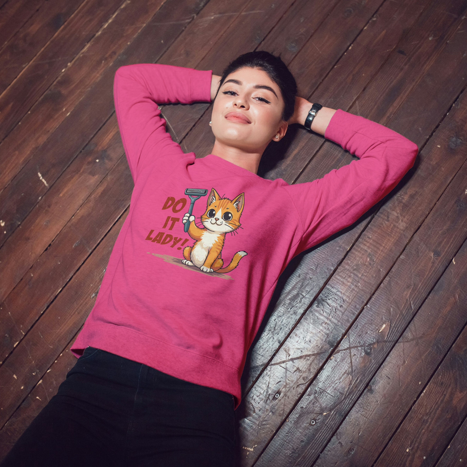 “Do It lady!” Funny Cat Women’s Sweatshirt – Bold Graphic Pullover, Sarcastic Novelty Gift
