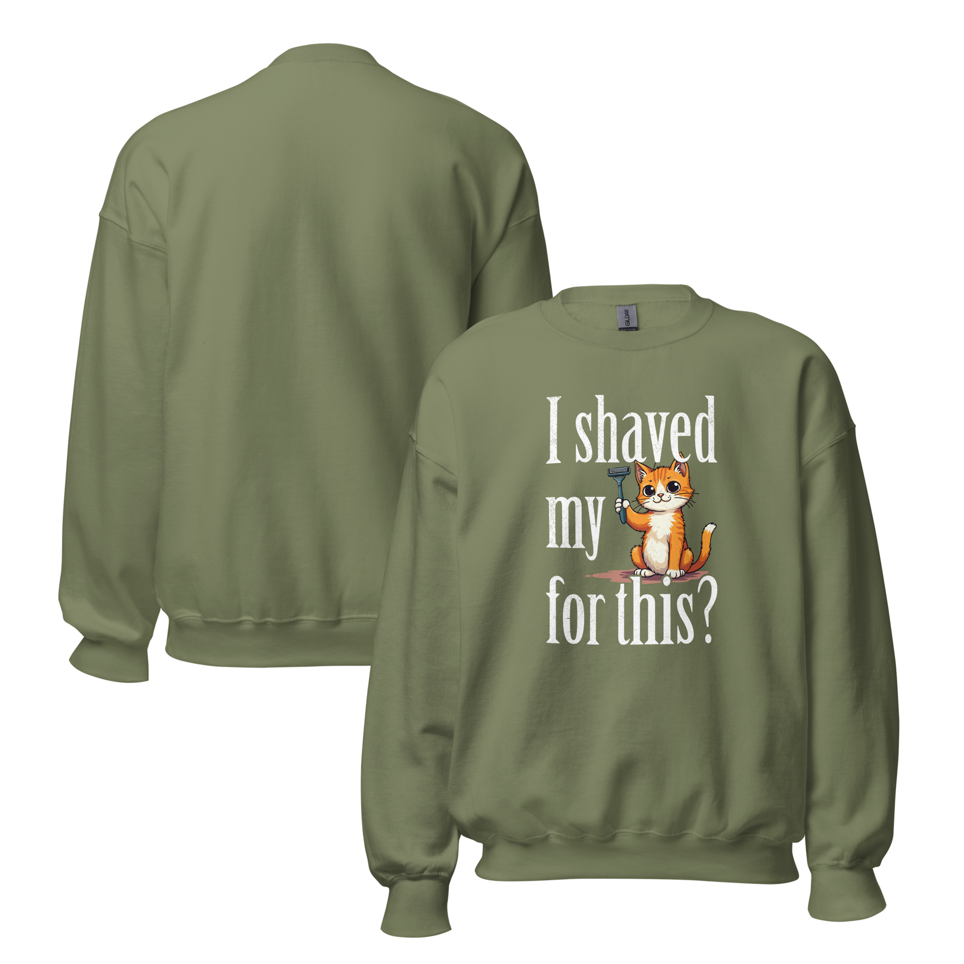 "I shaved my Kitty for this?" - Funny Women's Graphic Sweatshirt, Sarcastic Cat Humor Sweatshirt, Novelty Gag Gift