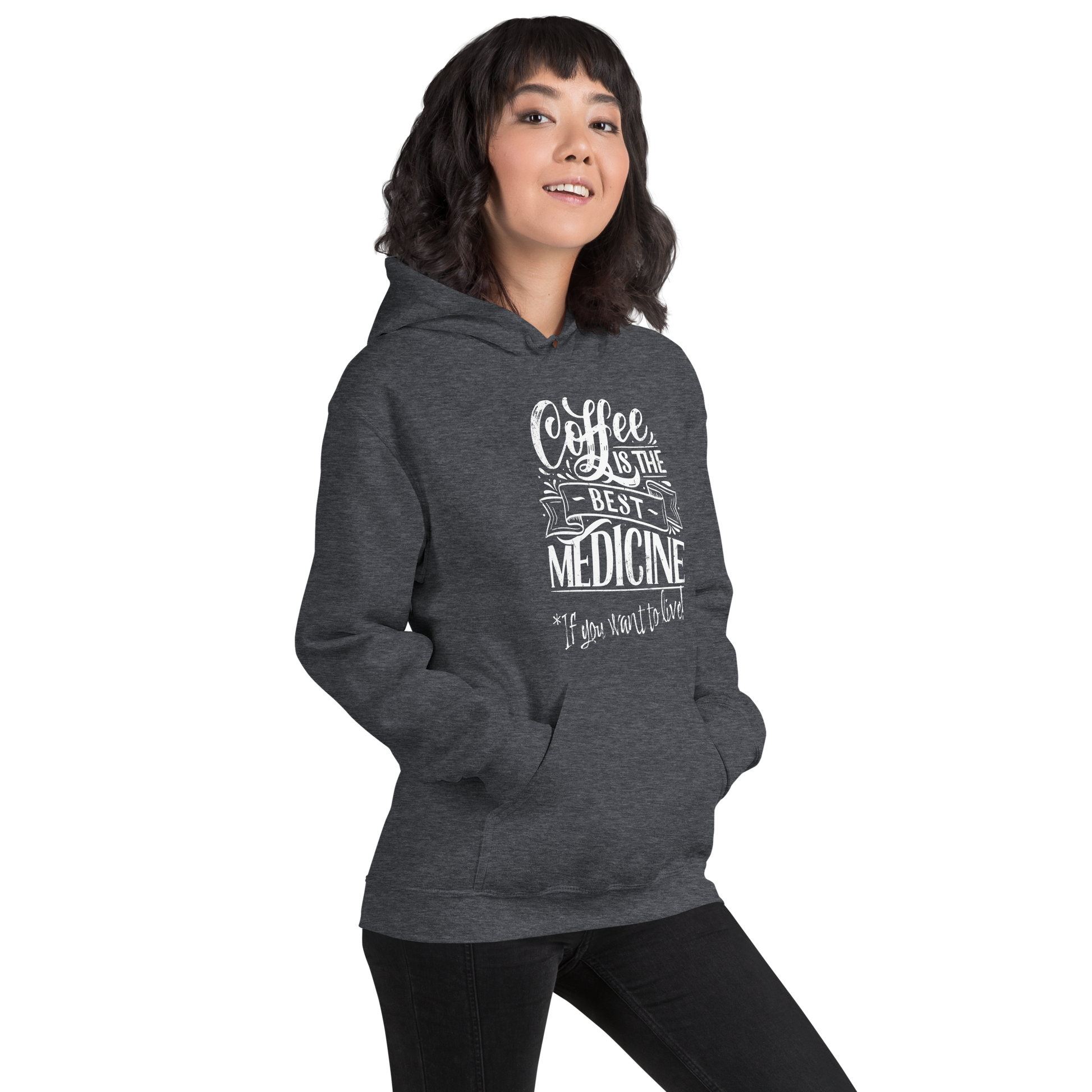 "COFFEE IS THE BEST MEDICINE If you want to live!" - White Graphic Women’s Funny Hoodie