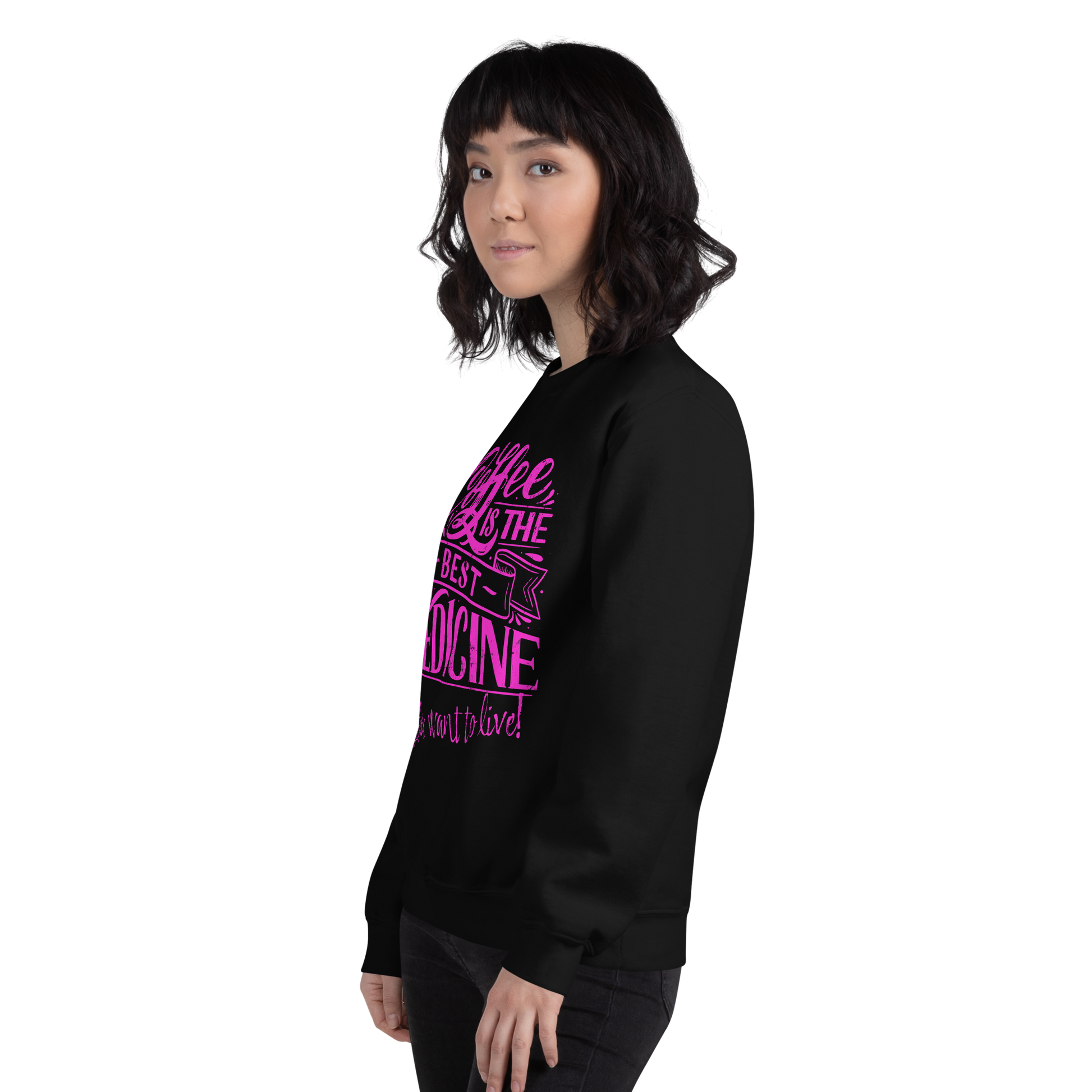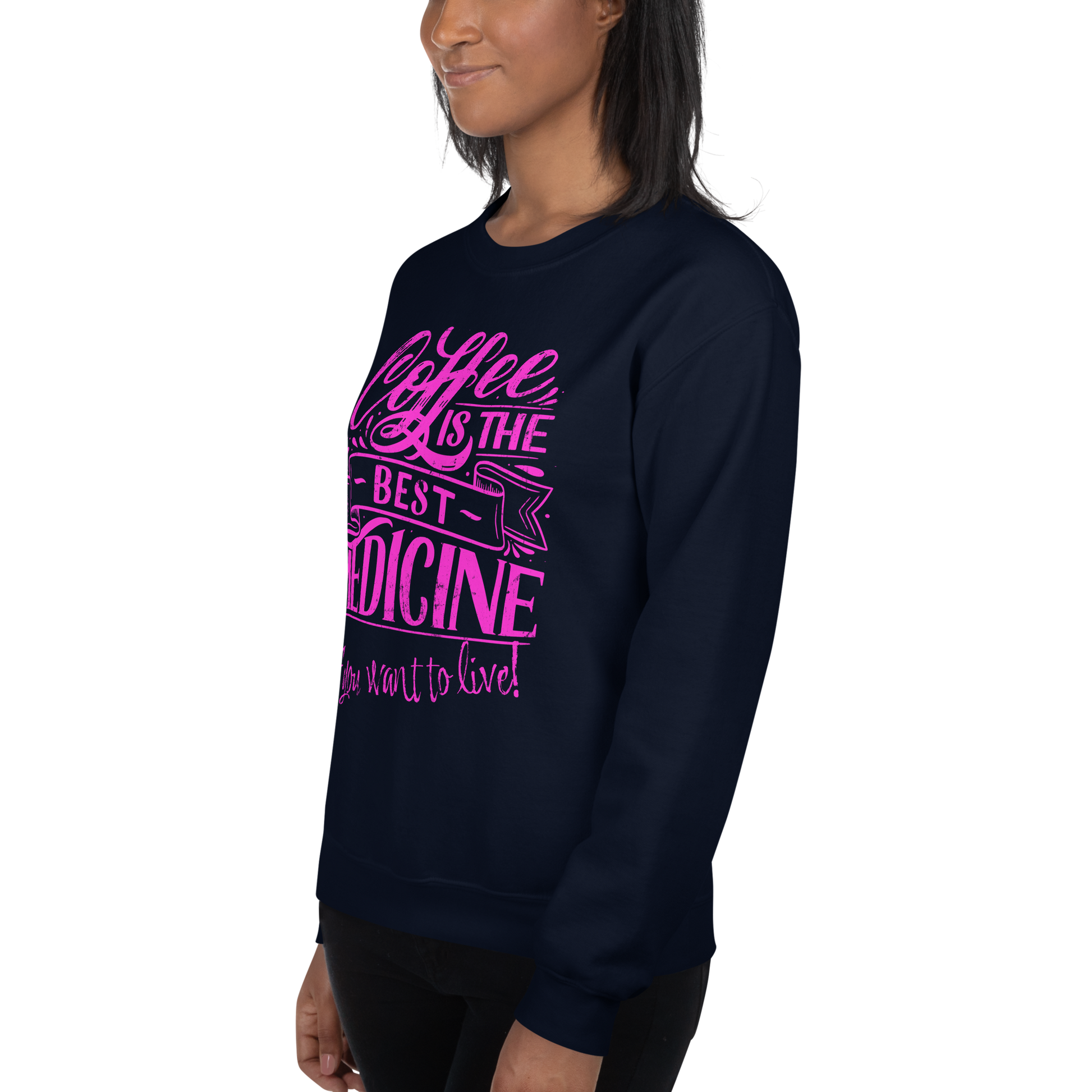 "COFFEE IS THE BEST MEDICINE If you want to live!" - Hot Pink Graphic Women’s Funny Sweatshirt
